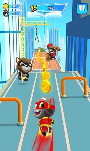Говорящий Том погоня героев — это новая игра про знакомых нам друзей Тома и конечно же про него самого. Здесь вам предстоит окунуться в мир раннера. Основная идея проекта направлена на бесконечный бег, ремонт зданий и городов, а так же развитие героев.