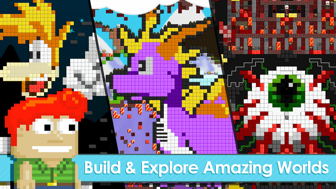 - Terraria. Одно из самых распространенных приложений данного жанра. Здесь игроки попадают в различные миры, но главной задачей является не только строительство зданий, но сражение против других пользователей. Для улучшения базовых навыков героя необходимо создать супер — зелье.